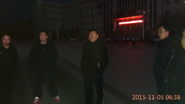 为了进一步提高早操质量,2015年11月5日早晨6:30由学生工作部部长贺知贤、部分二级学院分管领导、学管科长、干事、附属中专分管领导和学工部师生组成的早操观摩小组在行知广场对检测技术学院、自动化学院的早操组织工作进行了观摩,同时还观摩了国旗护卫队的教学训练工作。
